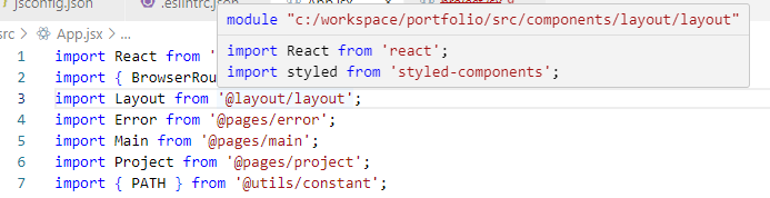 VSCode같은 에디터는 jsconfig.json를 통해 경로를 인식하고 경로 자동 완성을 통해 코드 작성을 도와주지만 webpack은 jsconfig.json에서 설정한 경로를 인식하지 못합니다.