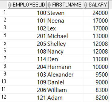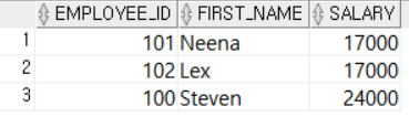 SELECT EMPLOYEE_ID, FIRST_NAME, SALARY