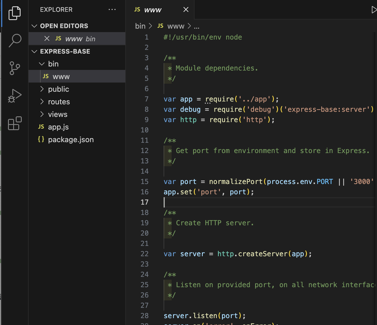 var debug = require('debug')('express-base:server'); // 콘솔창에 디버그 로그를 찍어줌