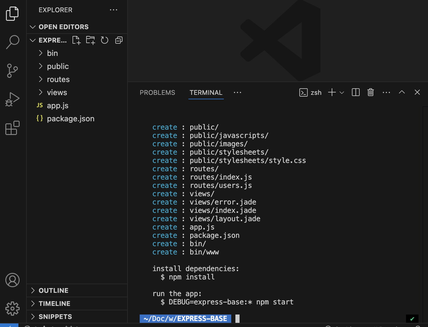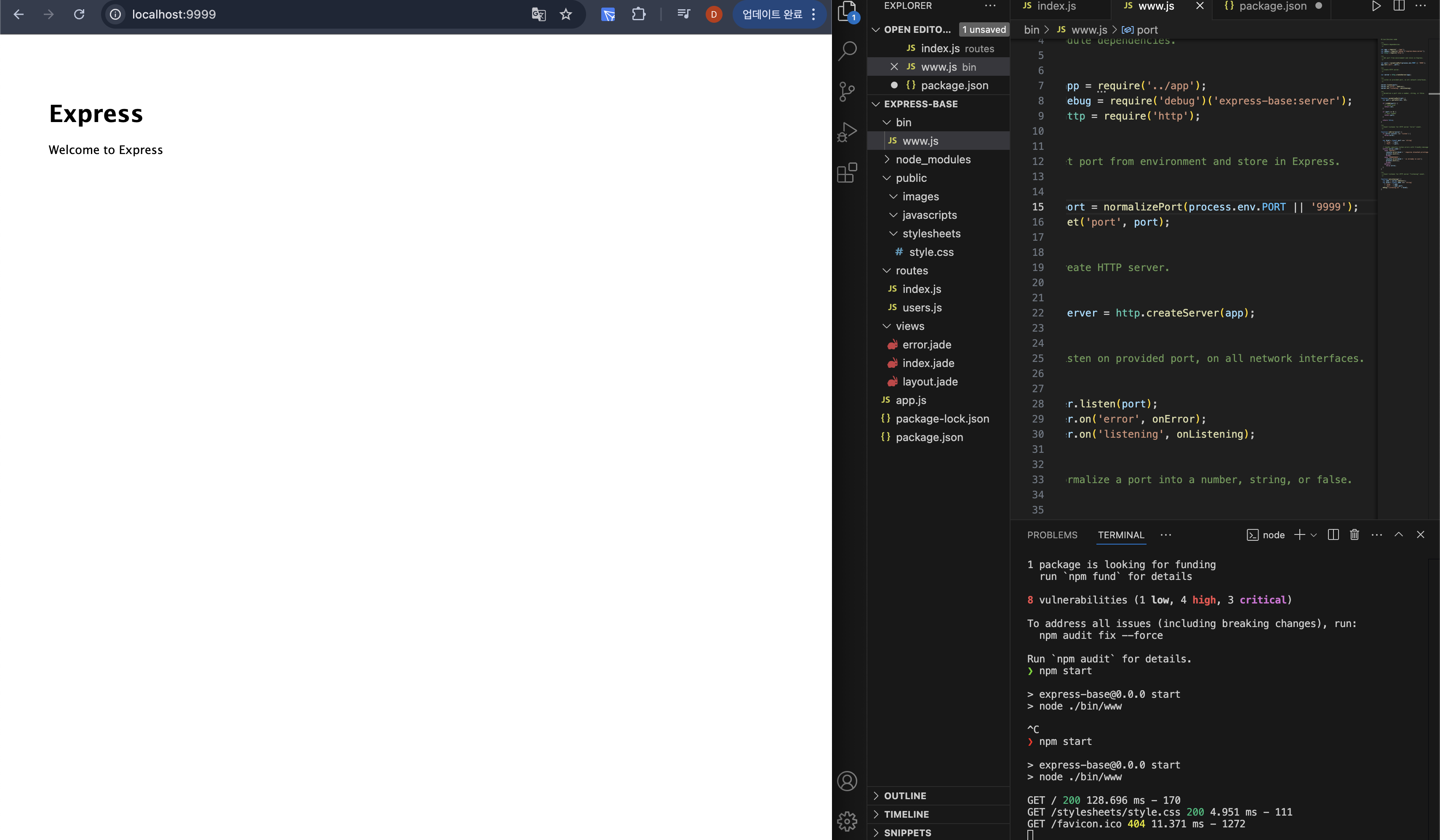express 명령어로 패키지 설치 완료