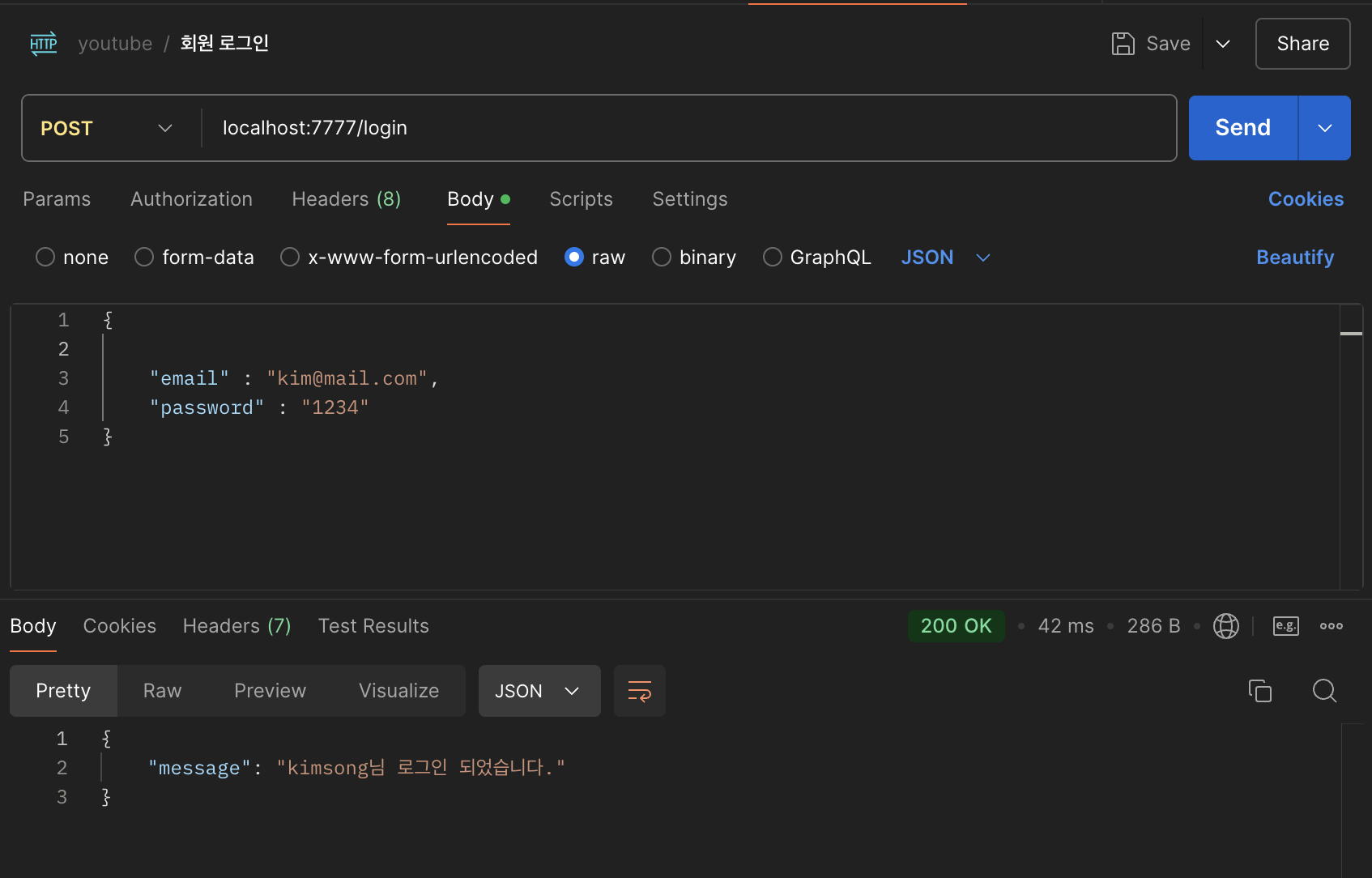 if (loginUser && loginUser.password == password) { // results에 값이 있다면을 로그인유저가 있고 패스워드가 같으면으로 변경해줌