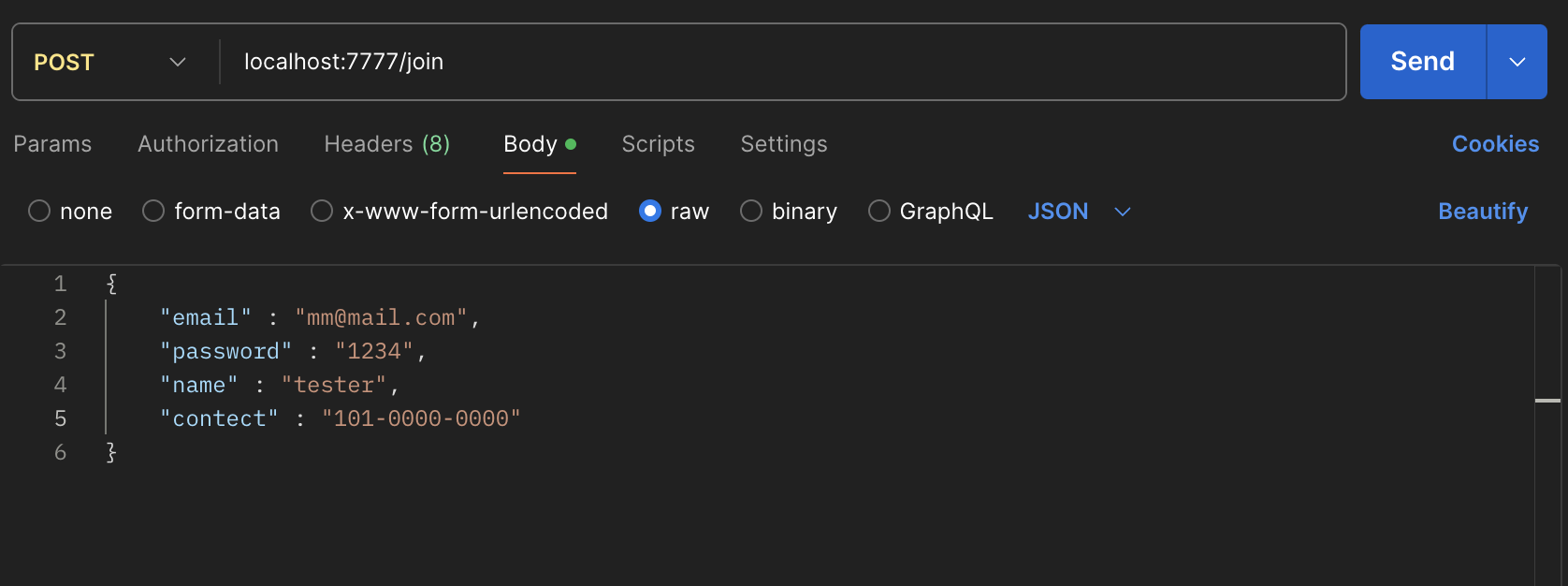 2) 회원 가입 : POST/join (SQL문: INSERT)