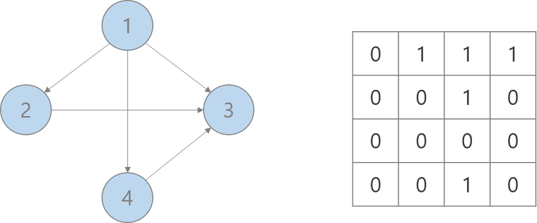 - 인접 행렬 방식은 모든 관계를 저장하므로 노드 개수가 많을 수록 메모리가 불필요하게 낭비된다.