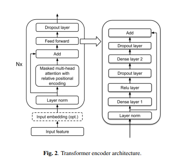 일반적인 Transformer(Post-Norm)와 달리 LayerNorm을 먼저 적용합니다. 또한 상대적 위치 인코딩(Transformer-XL 방식)을 써서 스트리밍 시 이전에 계산한 상태를 재사용할 수 있습니다. 이 덕분에 복잡도가 에서 로 줄고, 윈도우 마스킹을 더하면 상수 복잡도가 됩니다.