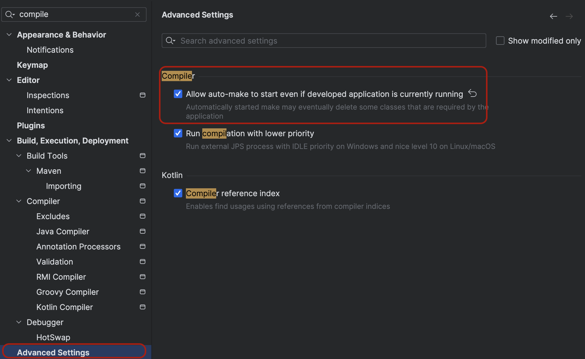IDE setting > Advenced Settings > Allow auto-make to start even if developed application is currently running 항목을 체크