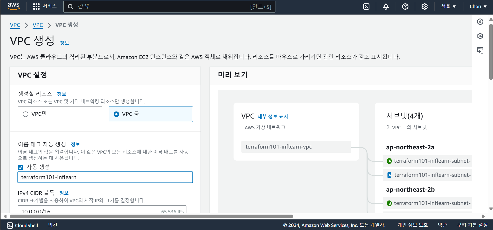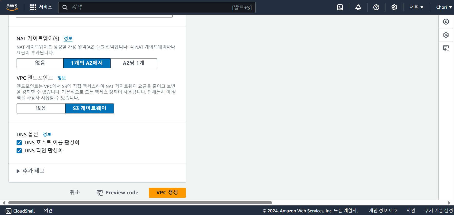 콘솔에서 VPC 만들기