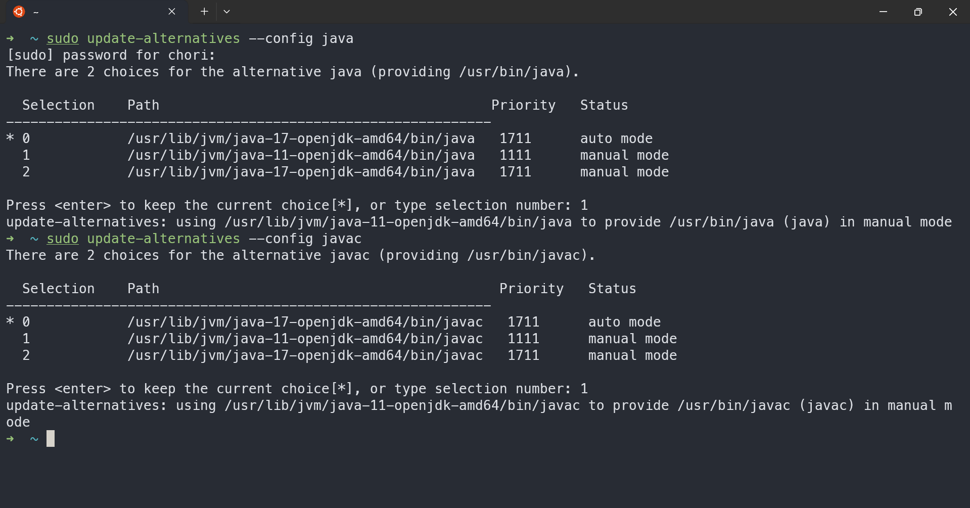 > sudo update-alternatives --config javac