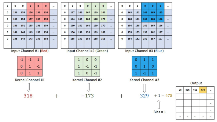 보다 쉽게 생각하자면 두개의 것이 합쳐져서 하나가 되는 것을 말하고, 작은 필터가 이미지가 이미지의 한 부분과 뒤섞이며 새로운 특징(이미지)를 만들어낸다.