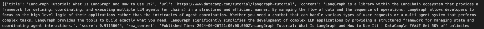웹에서 정보를 검색한 결과를 ToolMessage형식으로 LangGraph에 저장합니다.
