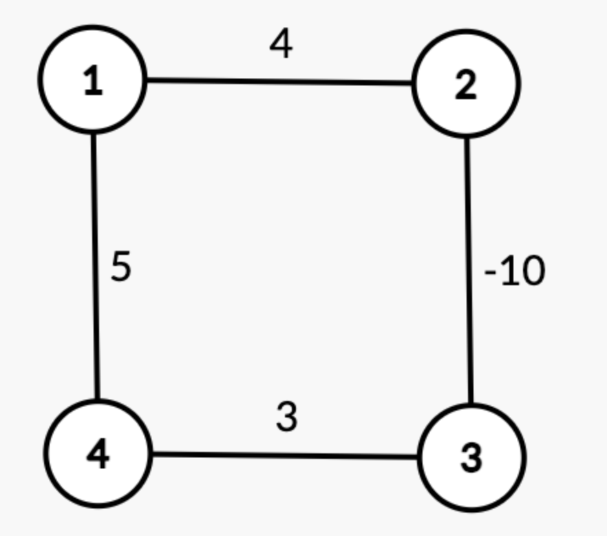 물론 플로이드 워셜 알고리즘을 통해 음수의 거리들을 속에서 최단거리를 찾을 수도 있다.