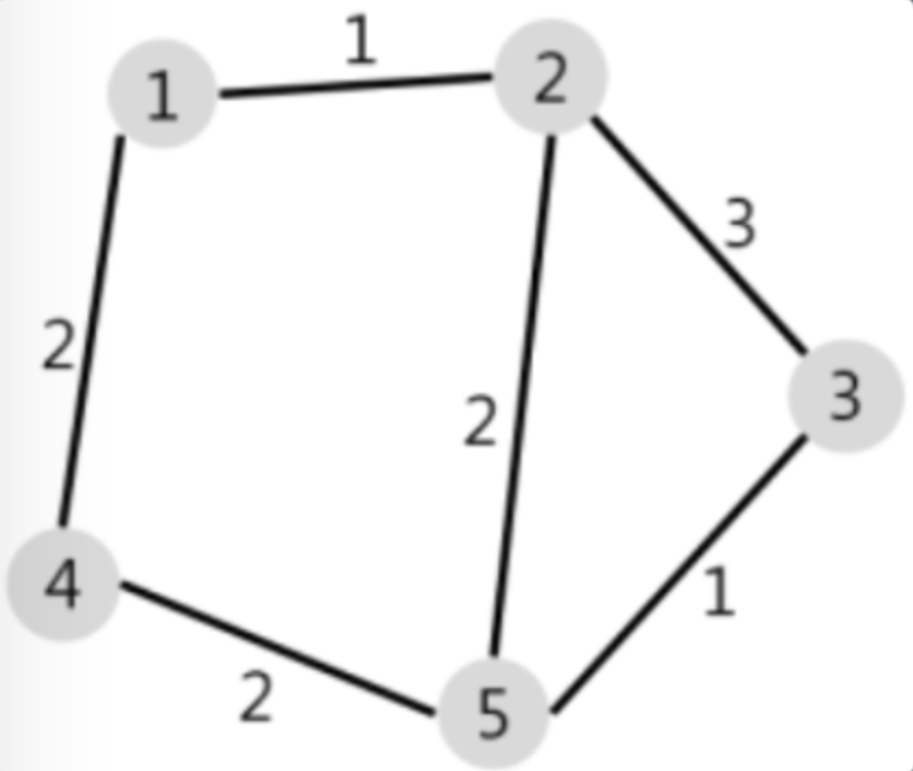 위의 그림을 예로 들 때, 1에서 5까지 가는 최소 비용은