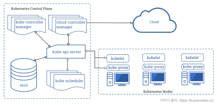 이렇게 클러스터 전체를 관리하는 노드를 Master Node (Control Plane)이라고 하고,
