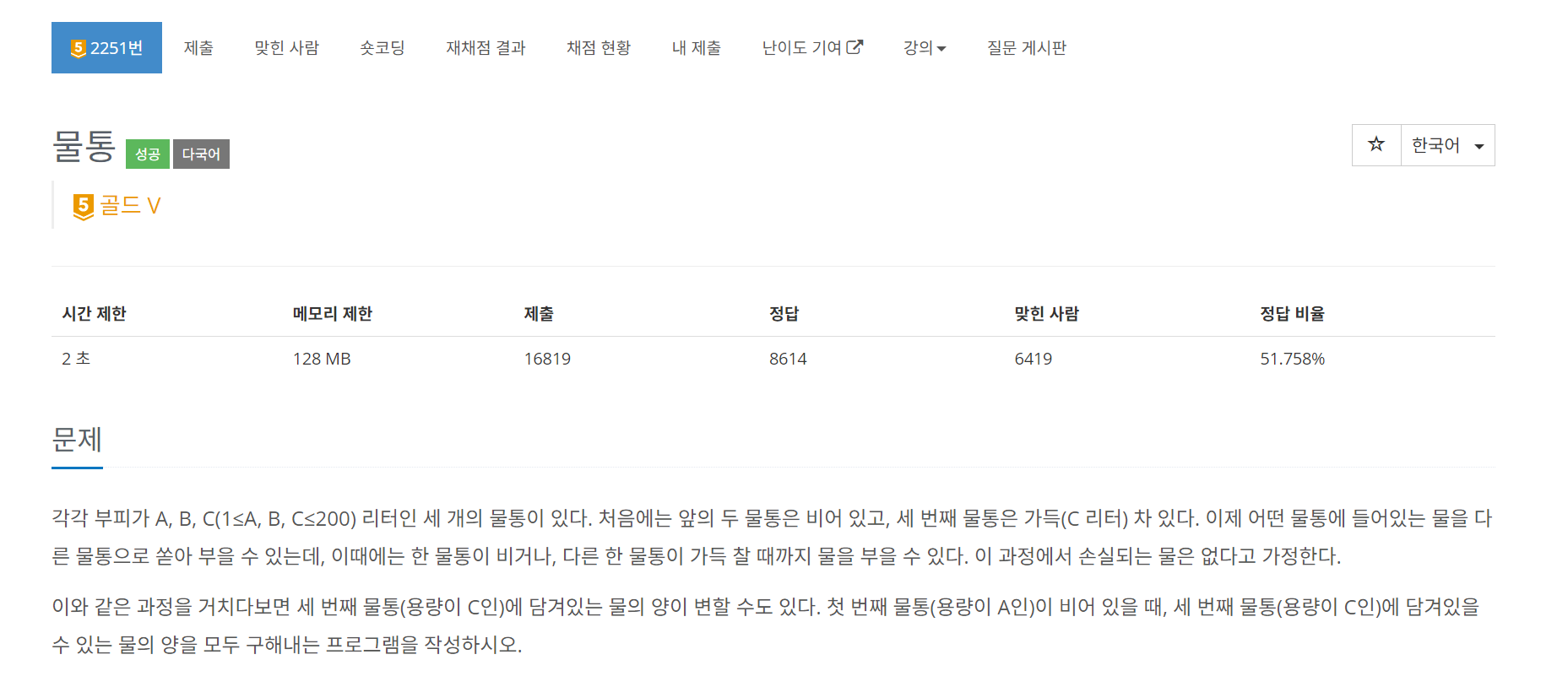 해당 문제를 풀기 위해서 물통의 물이 옮겨질 수 있는 모든 경우의 수를 계산 해야한다.
