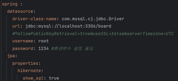 application.properties 또는 application.yml파일을 이용하여 JPA설정 정보를 지정.