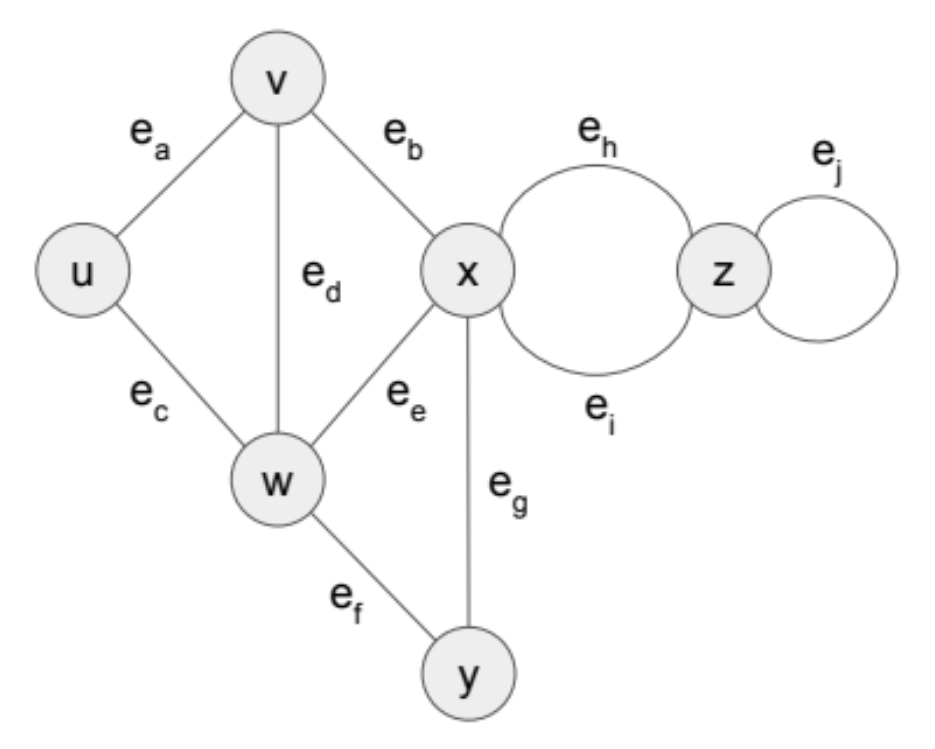 ex) e_a, e_b, and e_d are incident on v.Adjacent vertices