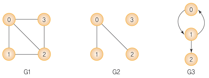 - V(G3) = {0,1,2}, E(G3) = {<0,1>,<1,0>,<1,2>}