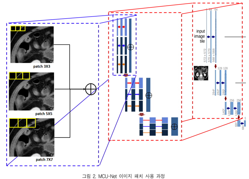 따라서 이 논문에서는 다양한 패치 크기의 U-Net 구조를 다중 연쇄 결합(Concatenation)하여 췌장 분할 성능을 향상시킬 수 있는 새로운 MCU-NET(Multiple Concatenated U-Net) 모델을 제안한다.