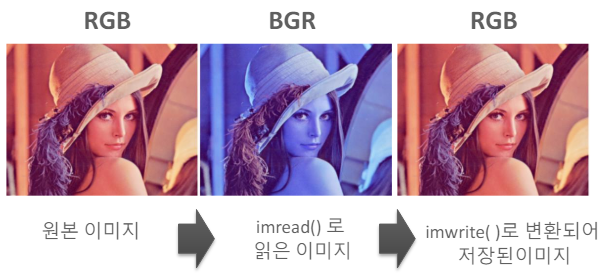 -> imread()로 읽고 imwrite()로 출력하면서 이미지 파일은 다시 RGB 형태로 저장됨