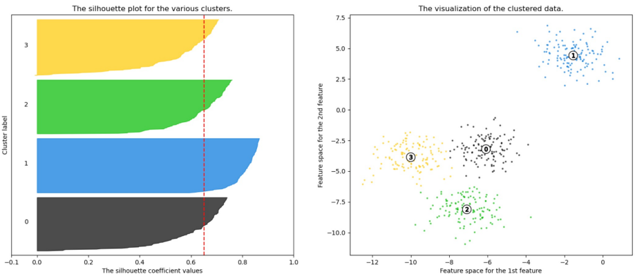 실루엣 계수는 -1 ~ 1 사이의 값을 가짐, 1에 가까울수록 더 좋은 군집을 의미