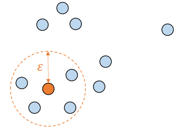 어떤 점을 기준으로 반경 ε 내에 샘플이 minpoints보다 많으면 같은 군집으로 할당