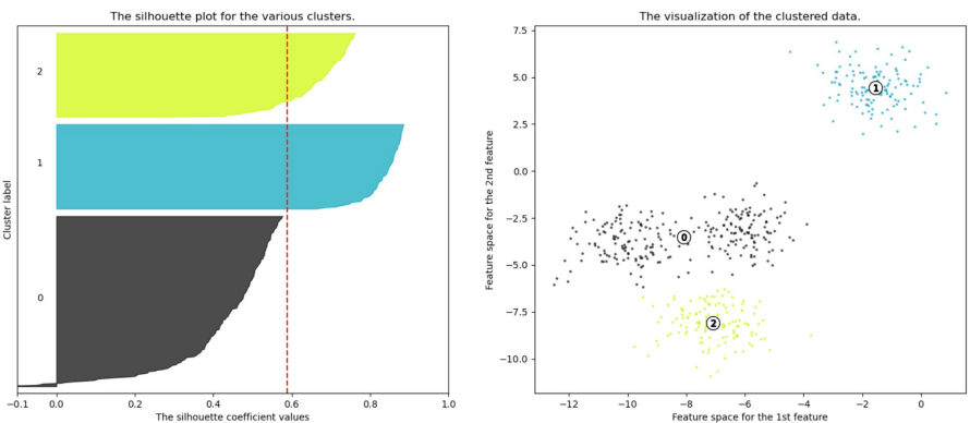 각 샘플들이 가지고 있는 실루엣 계수(silhouette coefficient)를 기반으로 함