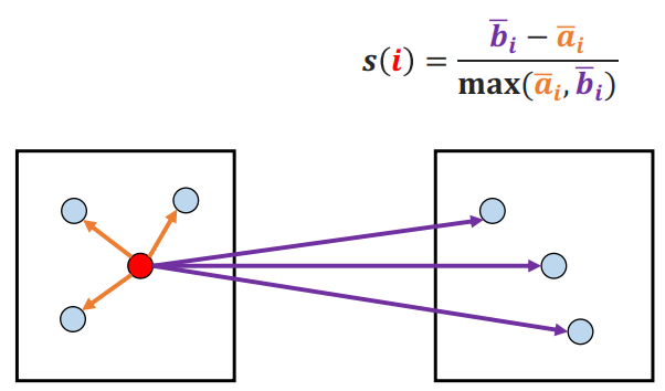 가장 가까운 타 군집 하나와의 거리를 통해 계산