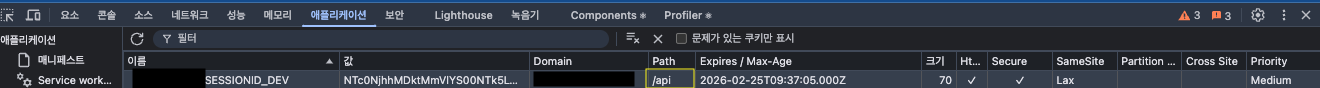 와 같은 경로이기 때문에 서버에서는 쿠키를 전달받지 못한 상황이였습니다.