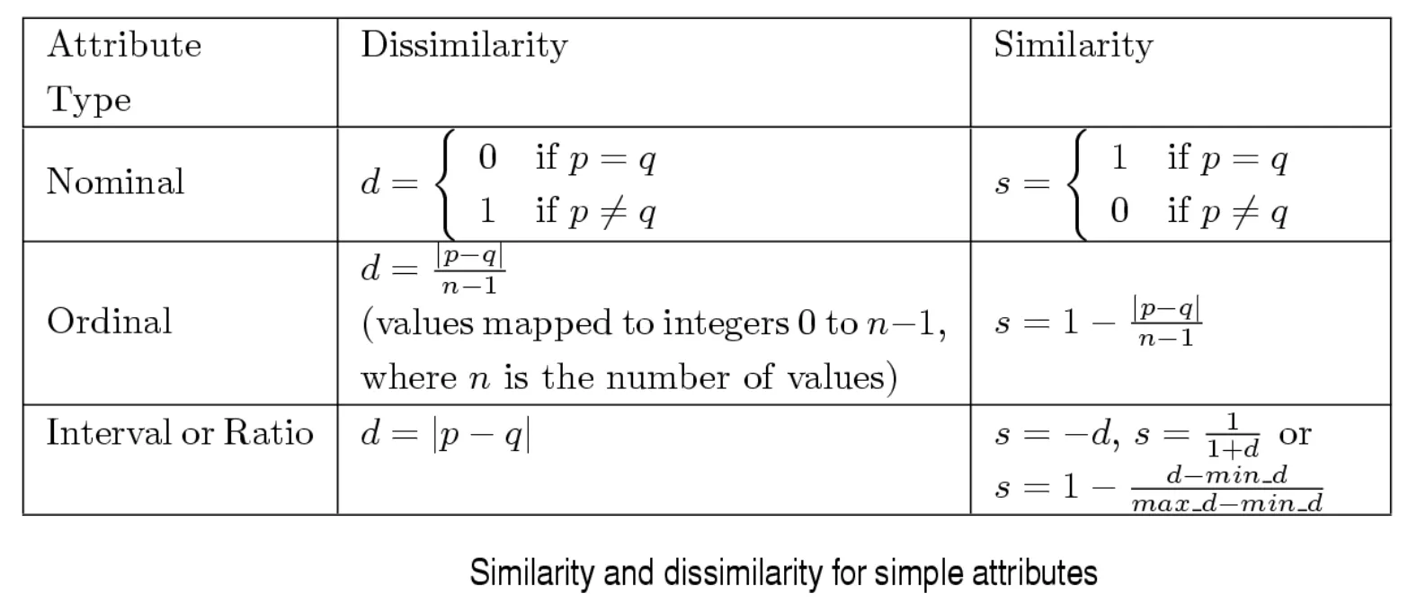 - 두 데이터 객체가 얼마나 다른지에 대한 수치적 측정값이다.