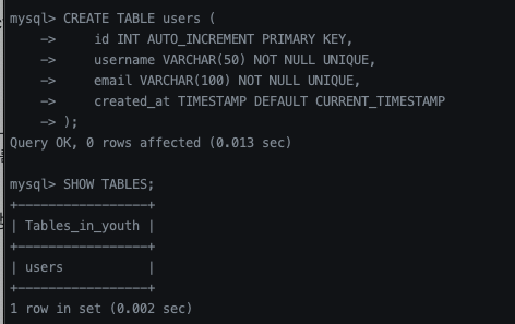 created_at TIMESTAMP DEFAULT CURRENT_TIMESTAMP