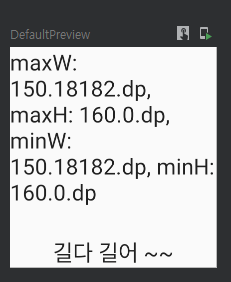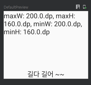 Text(text = "maxW: $maxWidth, maxH: $maxHeight, minW: $minWidth, minH: $minHeight")