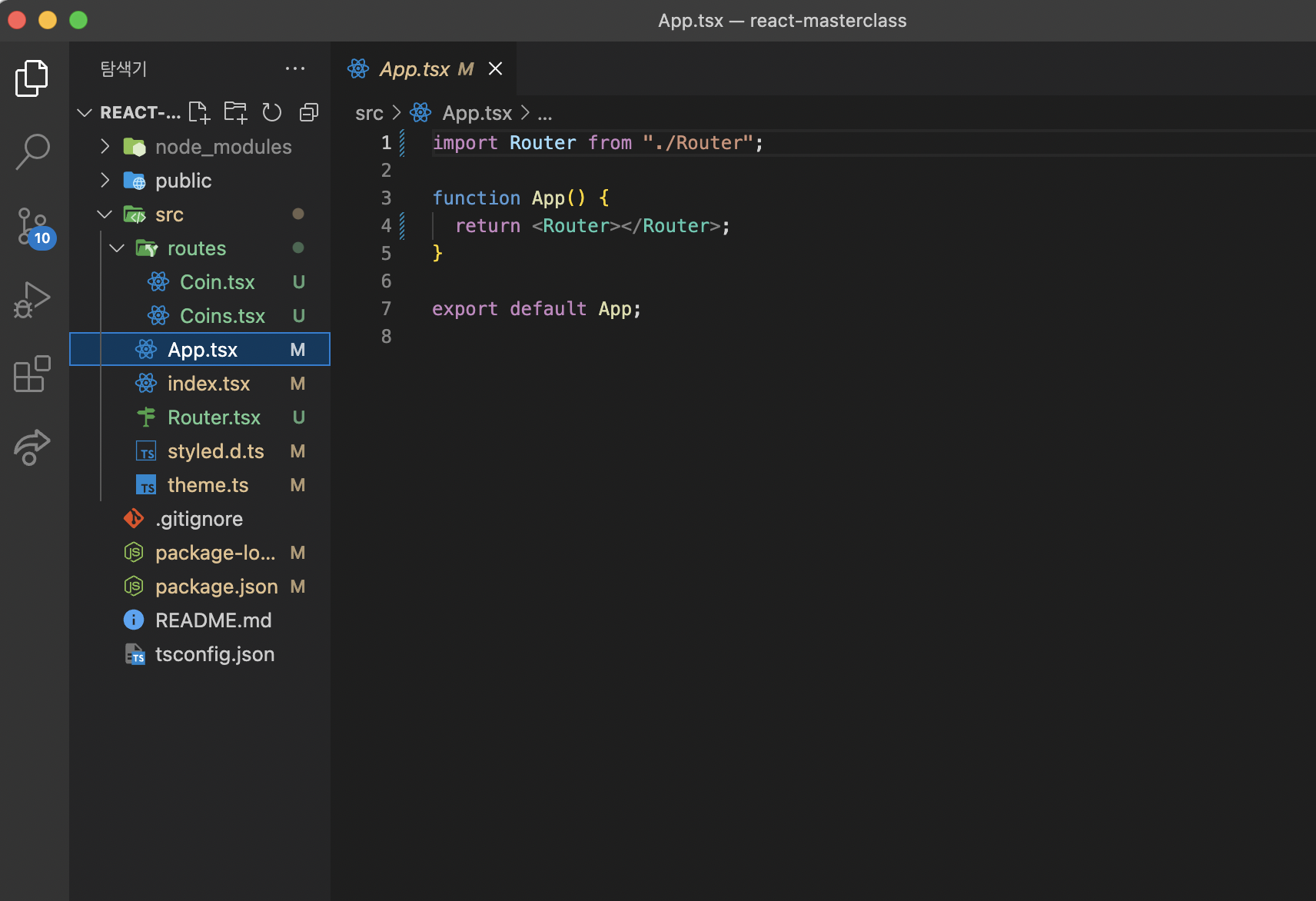 App.tsx에 위와 같이 Router를 렌더링 해줌.