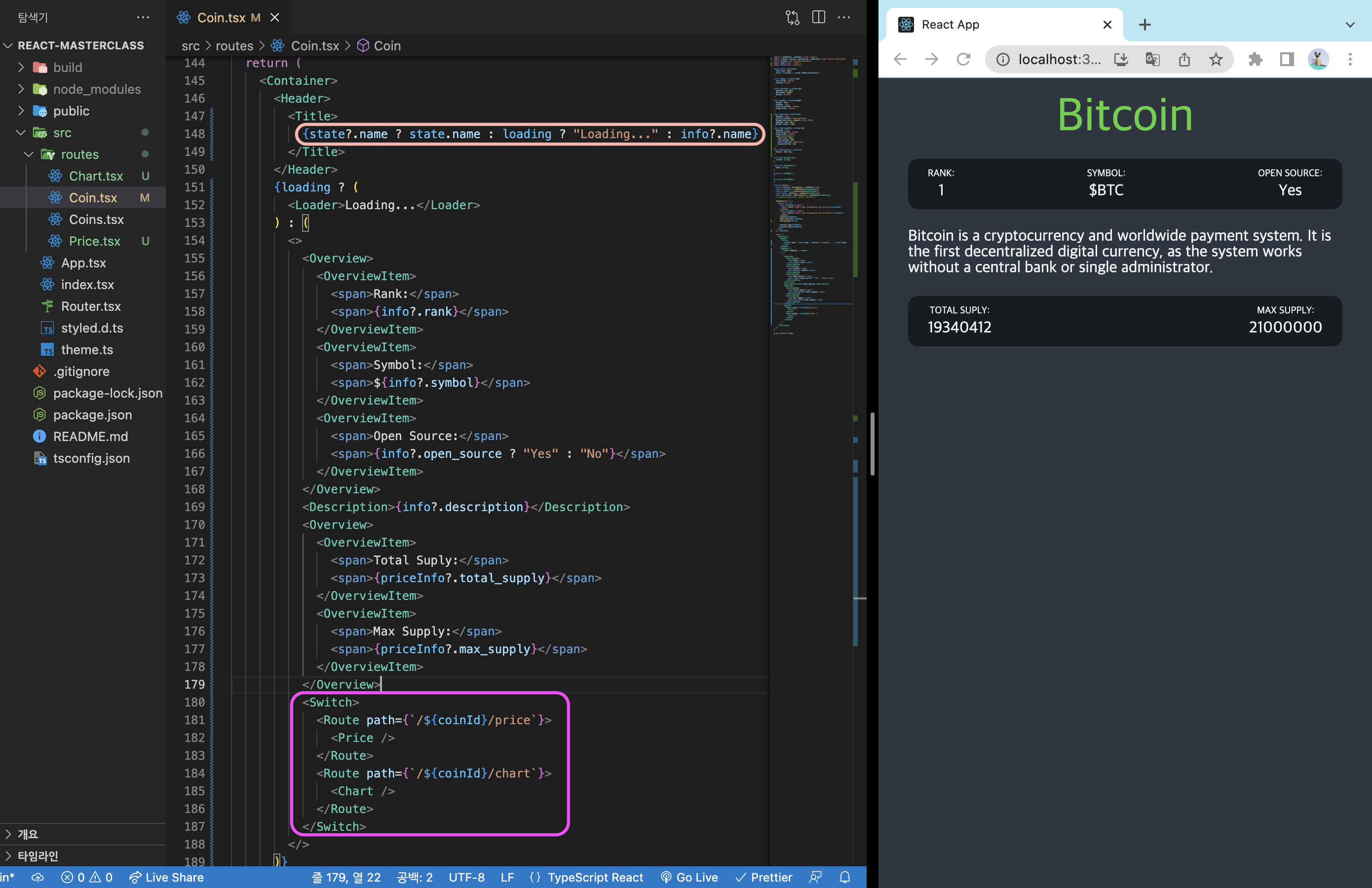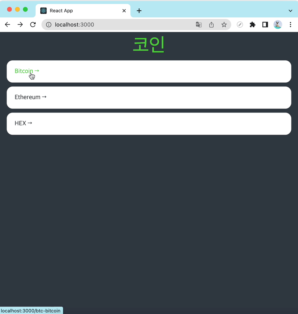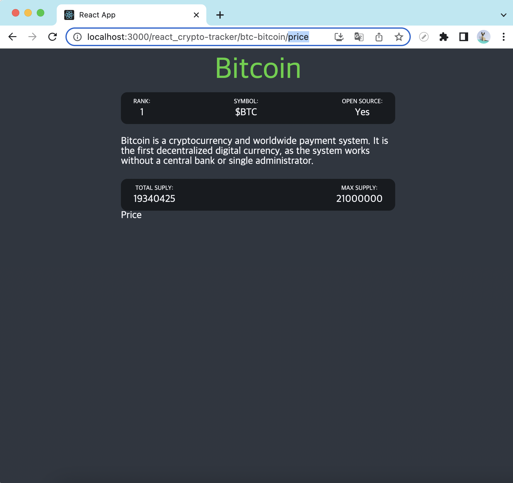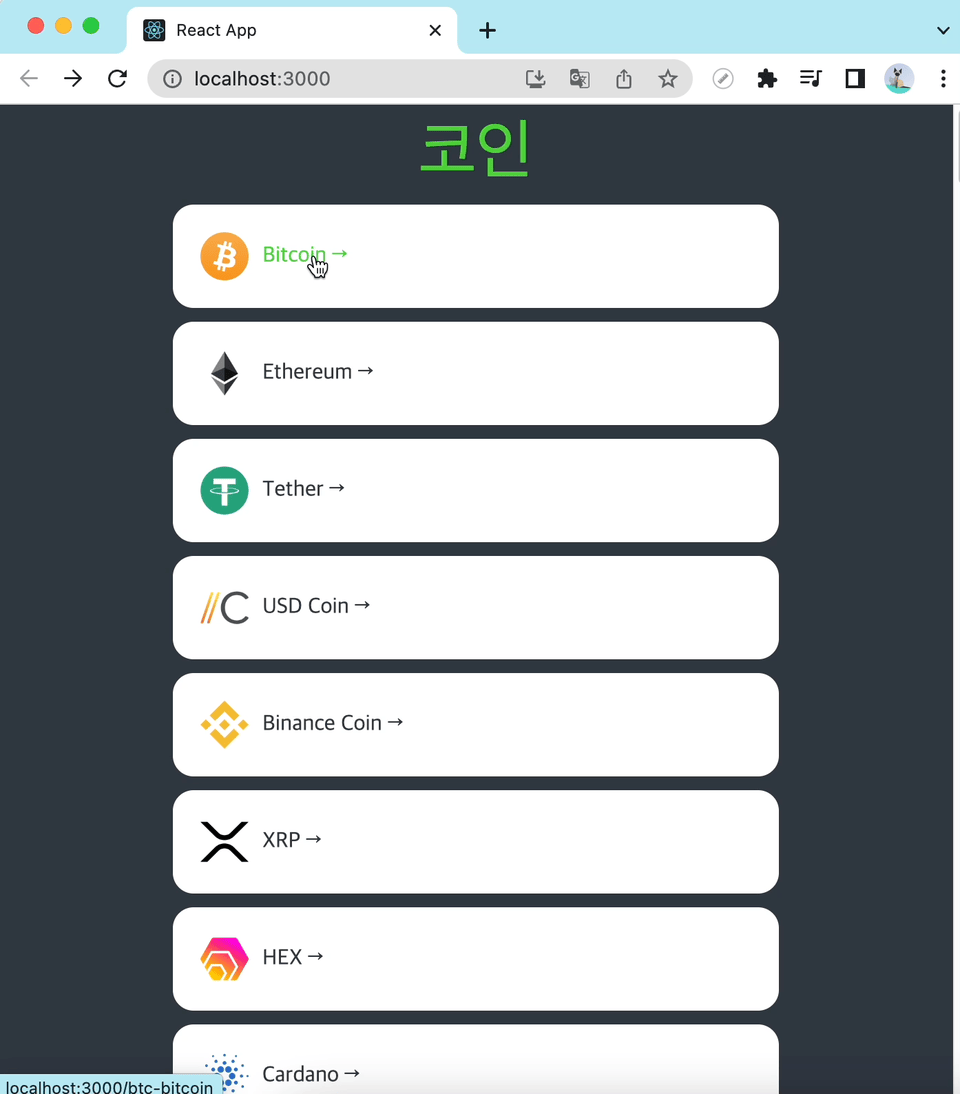 btc-bitcoin/price url로 들어가면 컴포넌트가 보임.