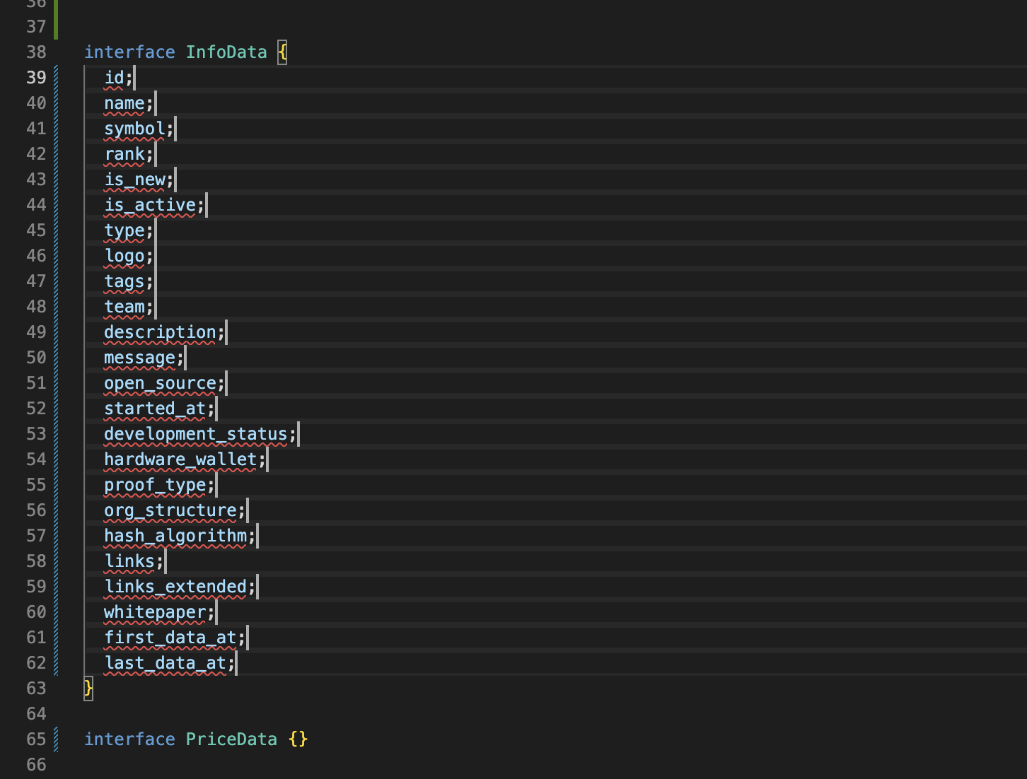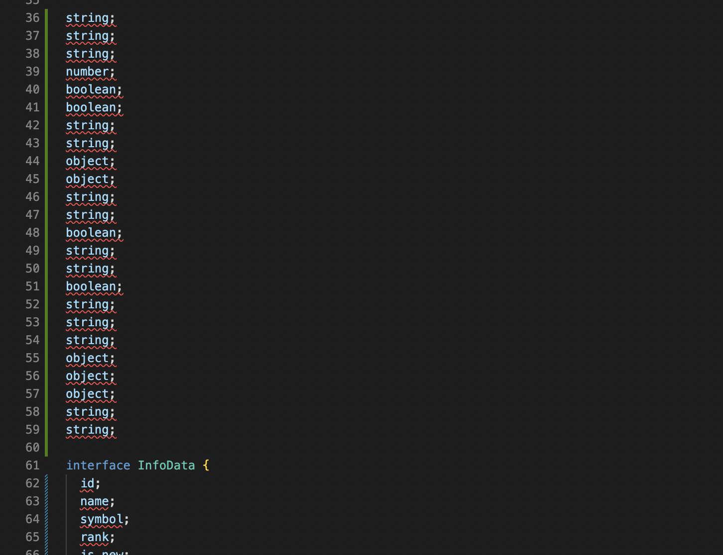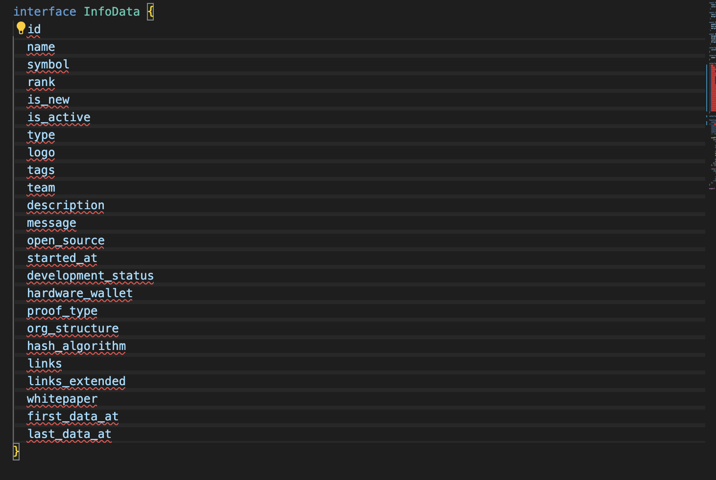 5. 위와 같이 interface로 정의해주면 타입스크립트는 data가 CoinInterface array거나 undefined인걸 알게됨. 위와 같은 오류는 data?로 하면 없어짐.