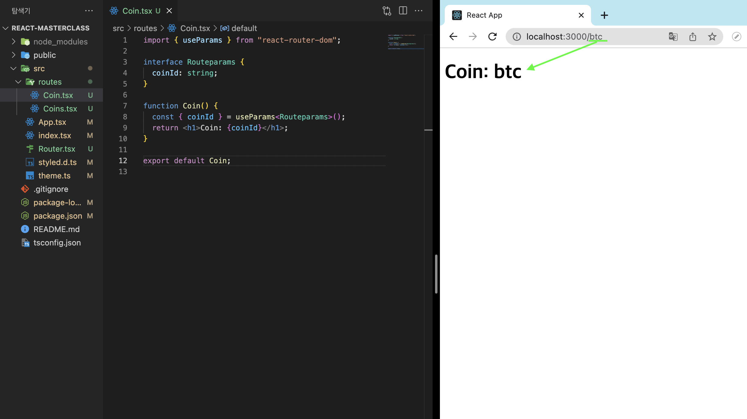 const {coinId} = useParams<{coinId:string}>();로 대체 가능함.
