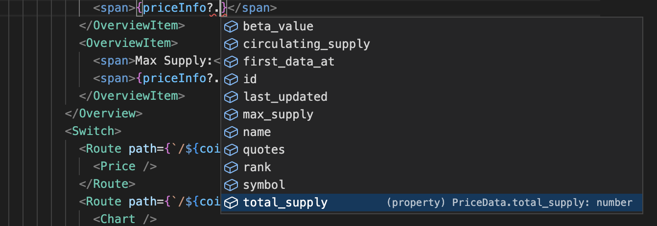 ?문법은 만약 priceInfo가 없거나 undefined이거나 존재하지 않으면 total_supply에 대해 요구하지 않는 거임.?를 붙이지 않는다면 total_supply를 항상 요구하게 되어서 priceInfo가 undefined라면 undefined안에 total_supply가 없다는 에러가 날거임.