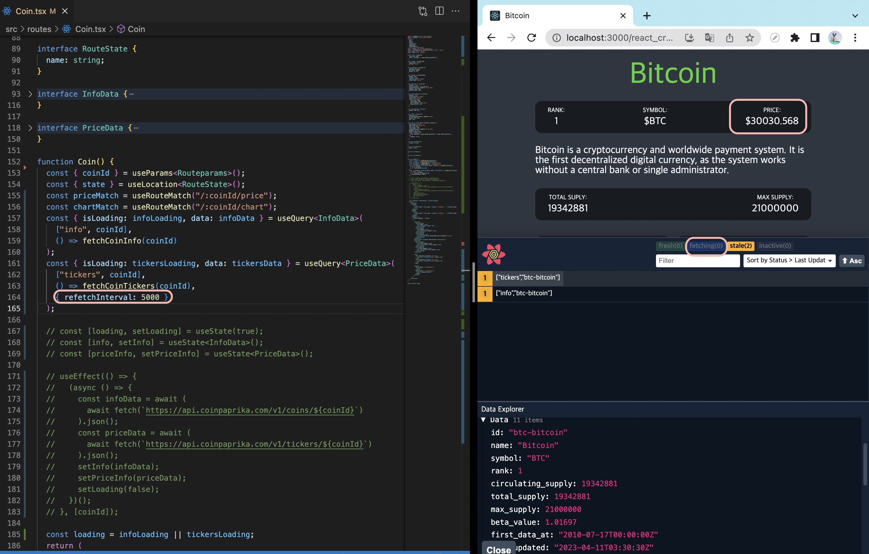 이제 코인의 가격이 실시간으로 보여주기 위해 5초마다 fetching을 할거임.