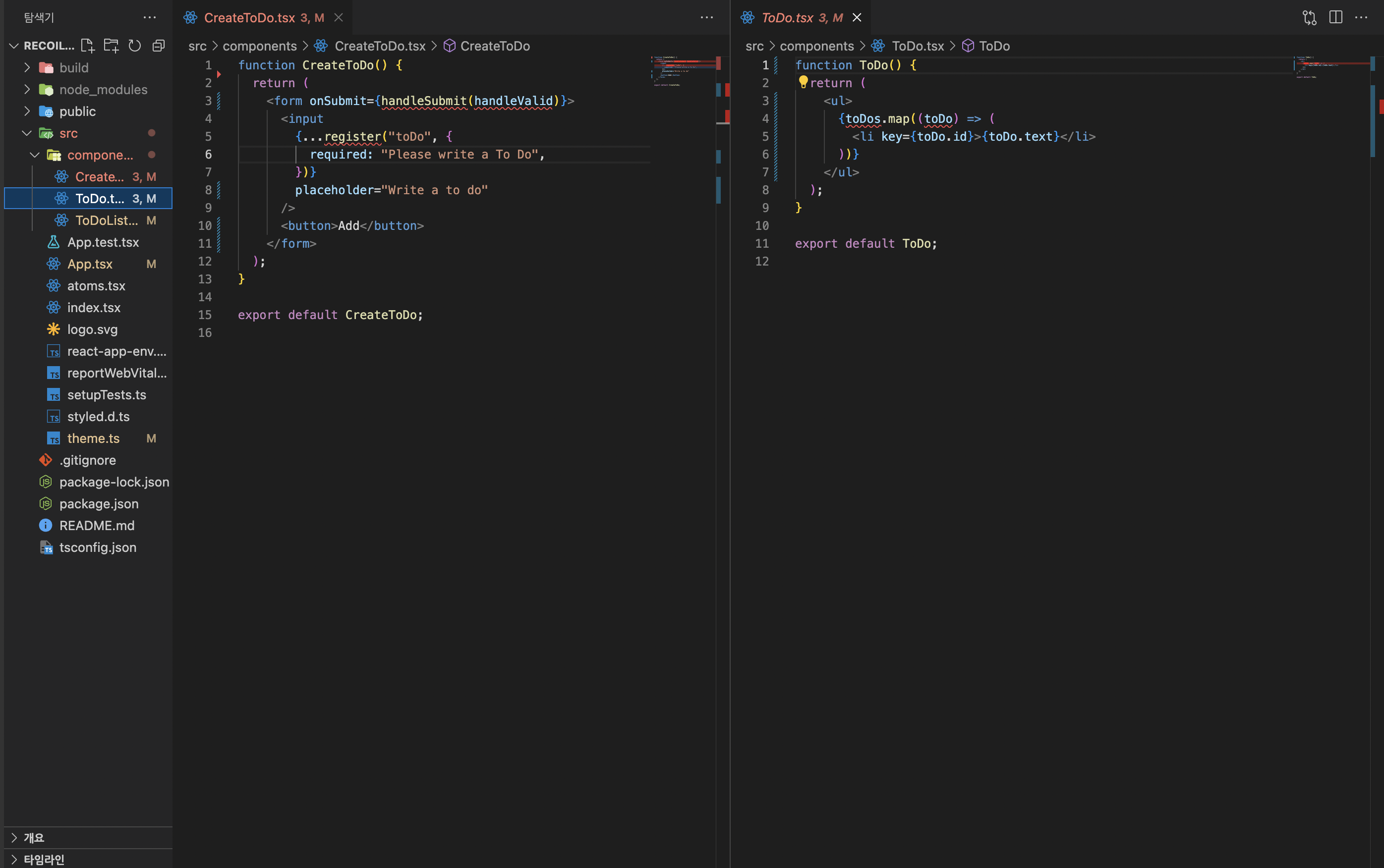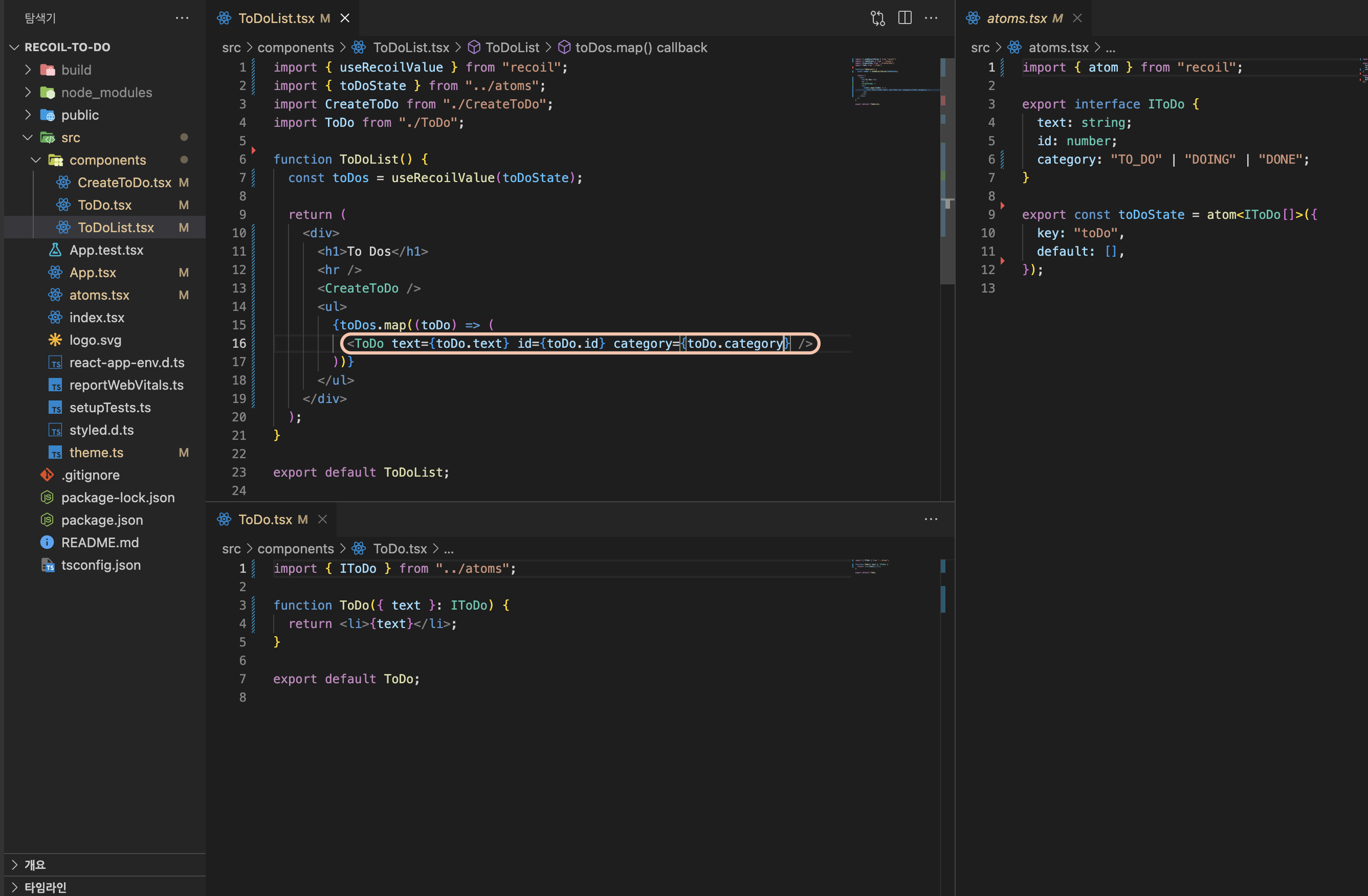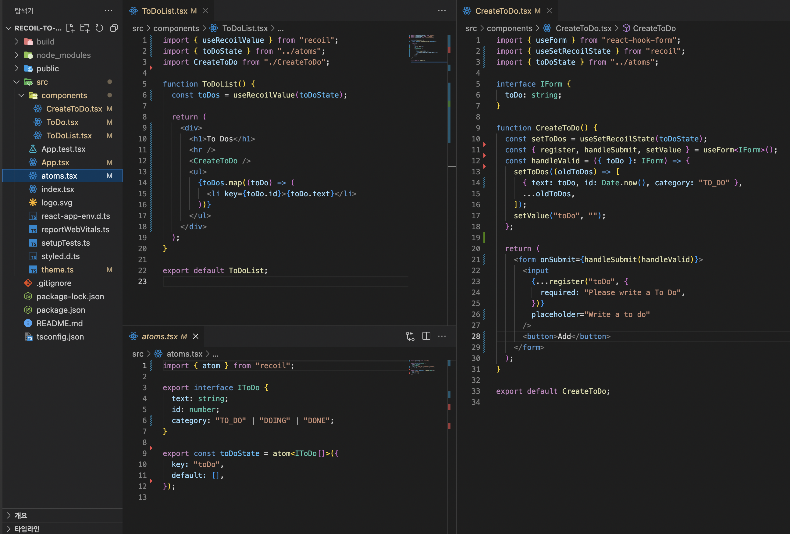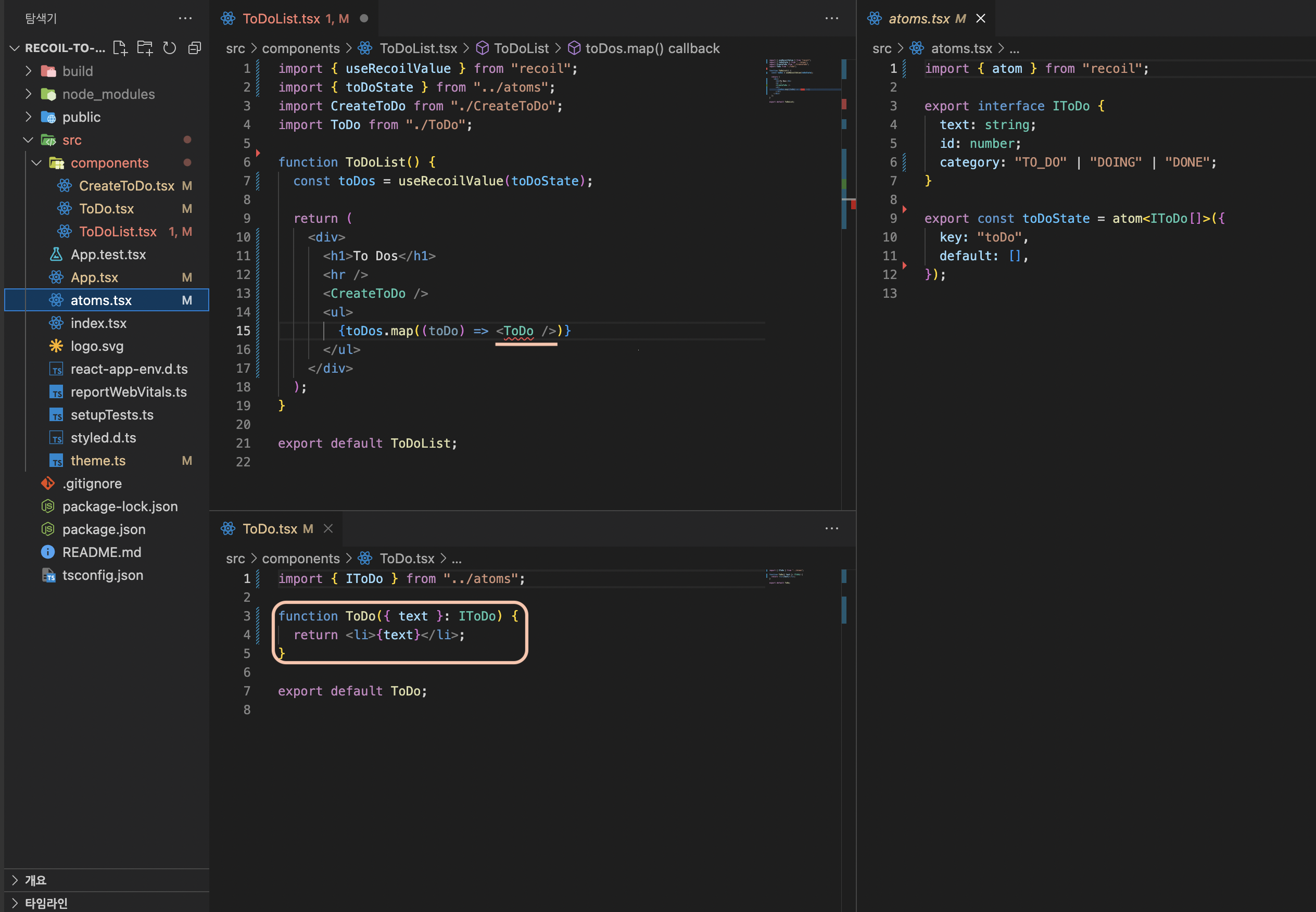시작하기전 ToDoList.tsx에 있던 코드들을 분리시키는 리팩토링을 해보자.