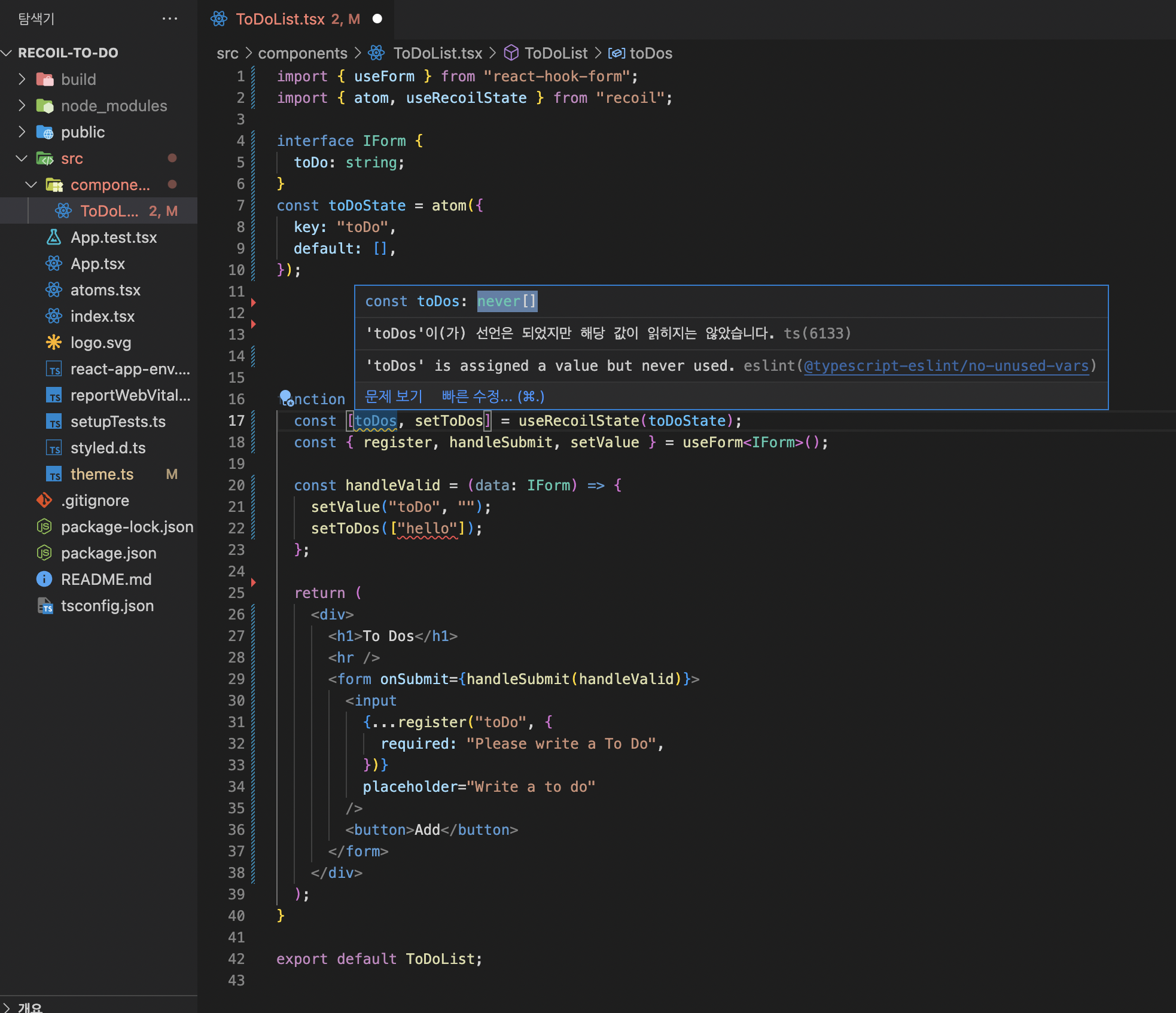 ToDoList.tsx로 가서 value에 적혀있던 string도 고쳐주자.