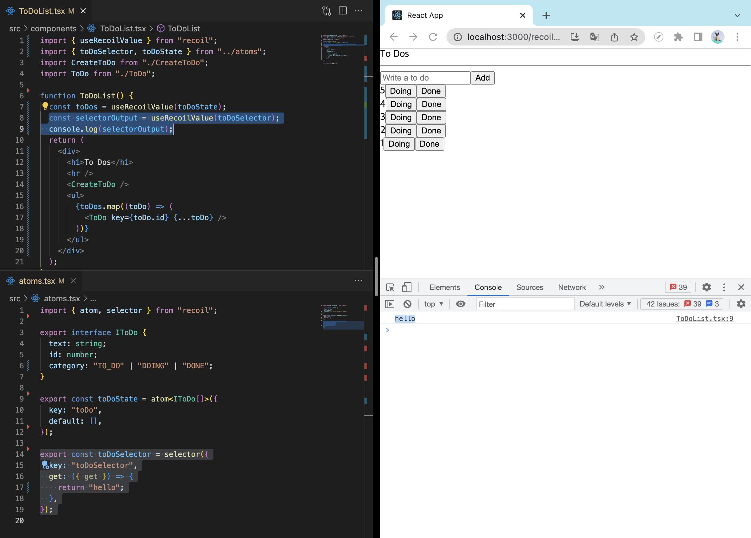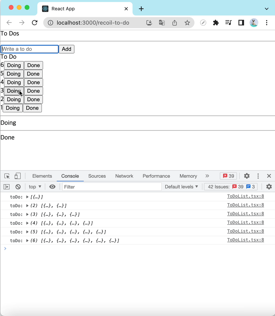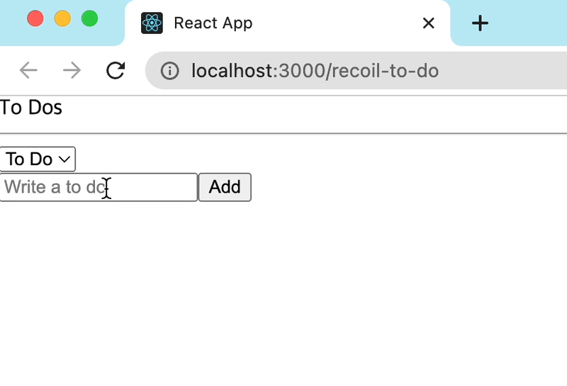 이번 강의부터는 recoil을 중점으로 해보자. toDo를 제출하면 ul로 렌더링되게 해보자.