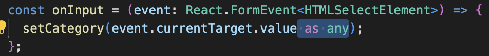 그래서 select에 value를 넣어주지 않고 option의 순서를 바꾸게 되면 처음 페이지에 들어왔을 때 category !== option의 value 일 수 있습니다.