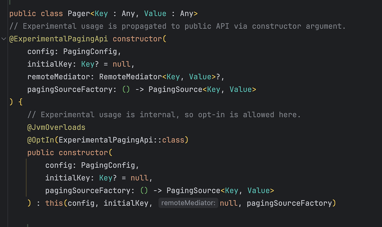 여기서 더욱 주의 깊게 봐야하는 것은 remoteMediator 와 pagingSourceFactory 인데 이들의 사용방법은 다음과 같다.