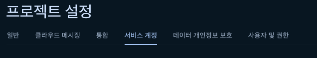 프로젝트 설정에서 '서비스 계정' 탭을 클릭한다.