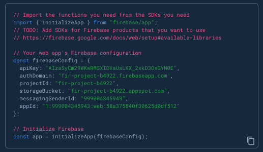 const app = initializeApp(firebaseConfig);