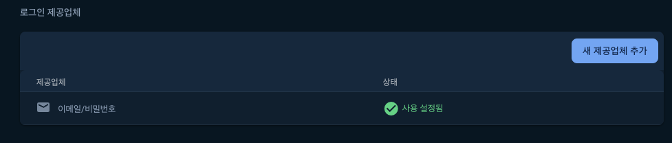나는 기본방식만 구현할 거라 '이메일/비밀번호'를 선택해줬다.