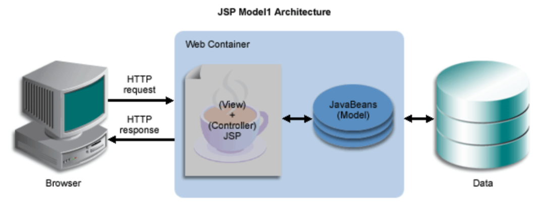 Model 1의 경우에는 빠르고 쉽게 개발이 가능하지만, JSP 파일이 너무 커지고 컨트롤러와 뷰가 같이 존재하기 때문에 유지보수에 어렵다.