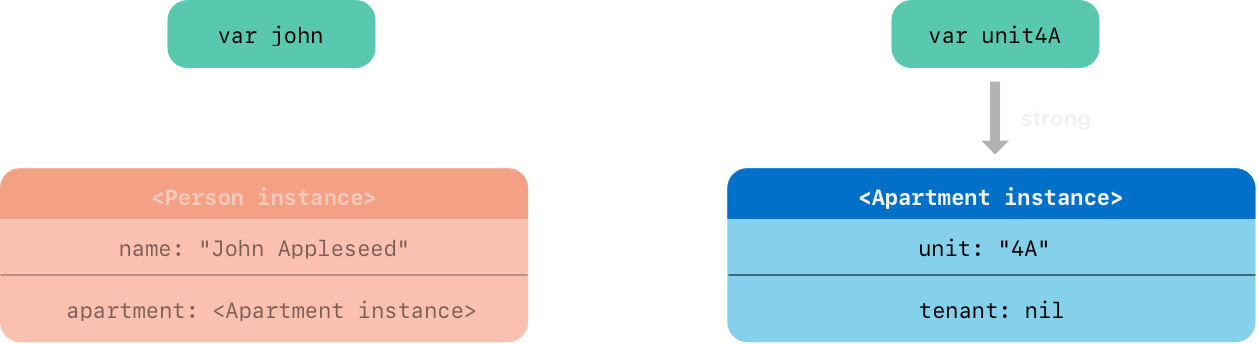 unit4A = Apartment(unit: "4A") // Apartment instance reference count: 1