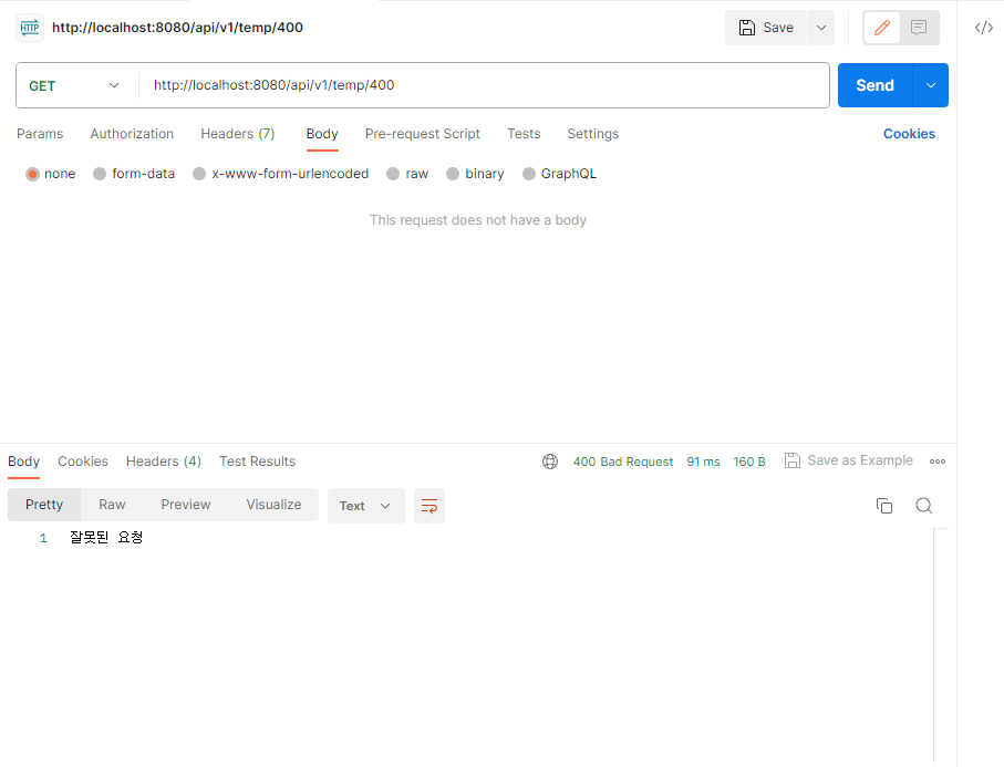 return new ResponseEntity<>("잘못된 요청", HttpStatus.BAD_REQUEST); // body는 생략가능