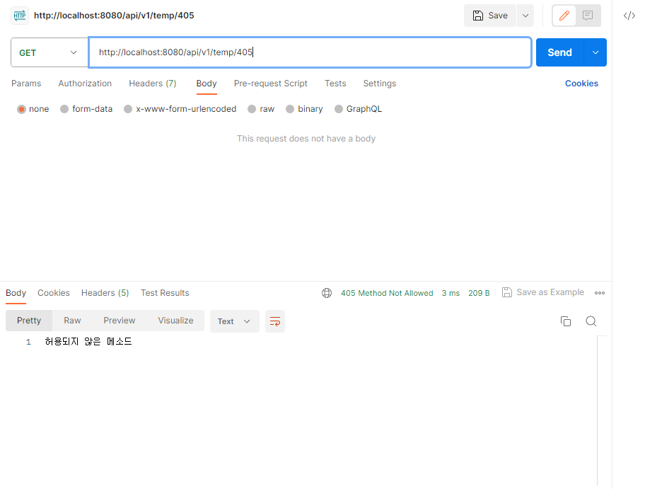 return new ResponseEntity<>("허용되지 않은 메소드", HttpStatus.METHOD_NOT_ALLOWED); // body는 생략가능