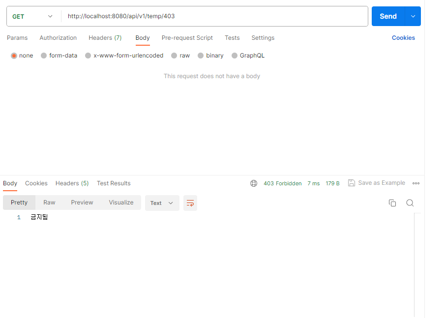 return new ResponseEntity<>("금지됨", HttpStatus.FORBIDDEN); // body는 생략가능