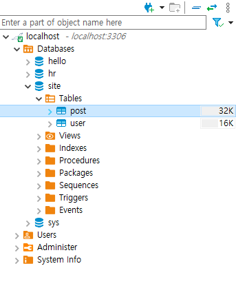 DBeaver에 들어가 테스트를 위해 기존의 있던 post와 user테이블을 삭제한다.